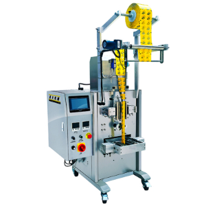 1、自動化程度:立式醬料包裝機能夠實現從制袋、計量、充填、封合、分切到計數的全程自動化生產,采用PLC控制器執行操作,過程穩定、快捷、高速。